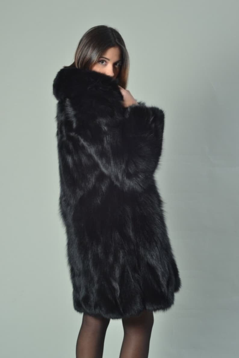 Black Fox Fur Coat Knee length, Plus Size Coat, Real Fur Coat, Women Jackets, Warm Vest, Winter Gift, Women Coat, Luxury Gift For Her, Winter Coat, Fur Collar, Black Fur Jacket, MEXA handcrafted by SKF Furs. You would love to wear this black fox fur coat during cold winter days! Very beautiful coat! So soft and cozy.