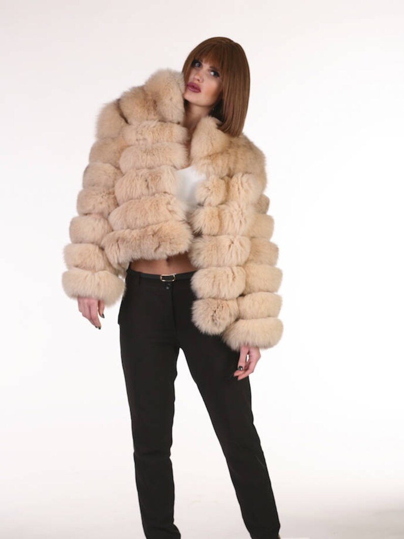 Luxury gift | Beige Fox Fur Coat Women’s | Women’s Brand New All sizes | SAGA | AGAUE
